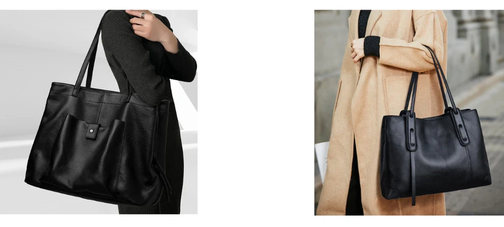 Luxury Genuine Leather Tote Bag for Women, Large Capacity, Top-Grain Cowhide, Handheld Shoulder Bag, HUG Style