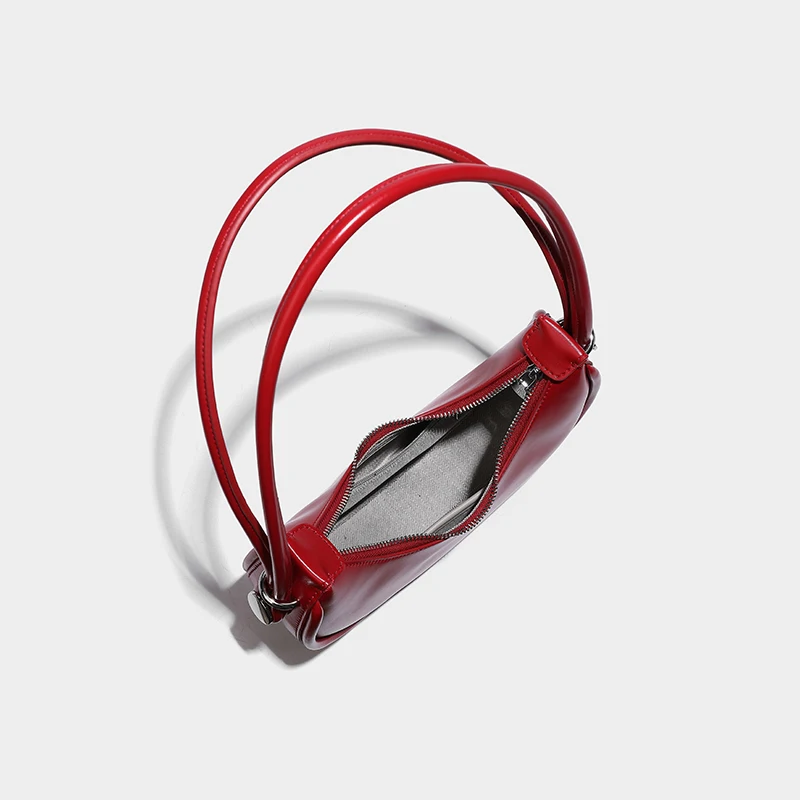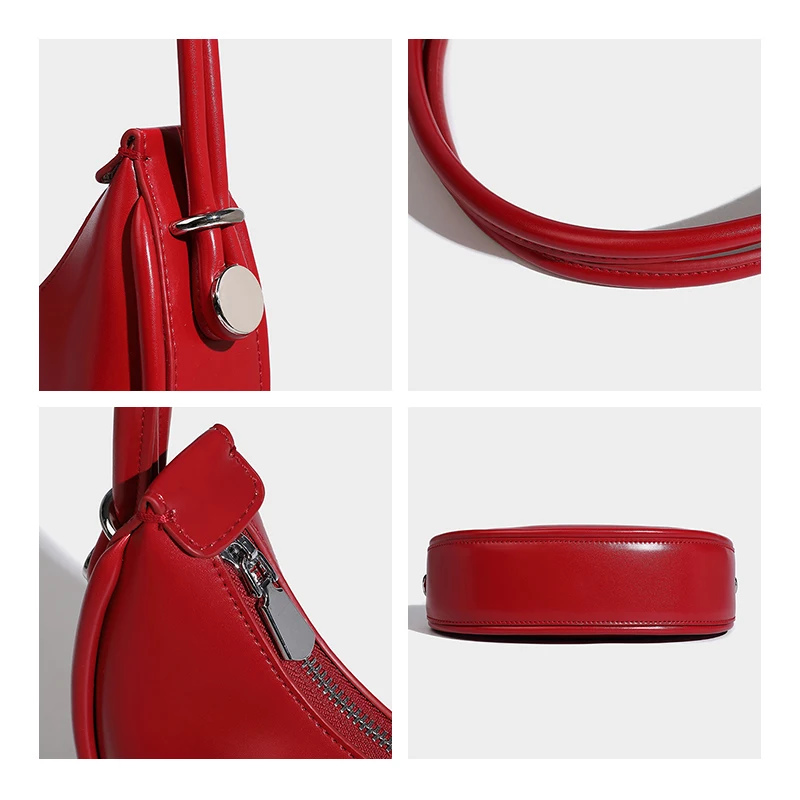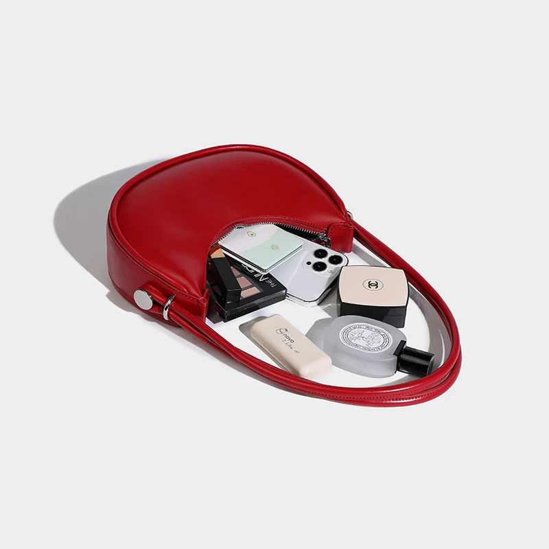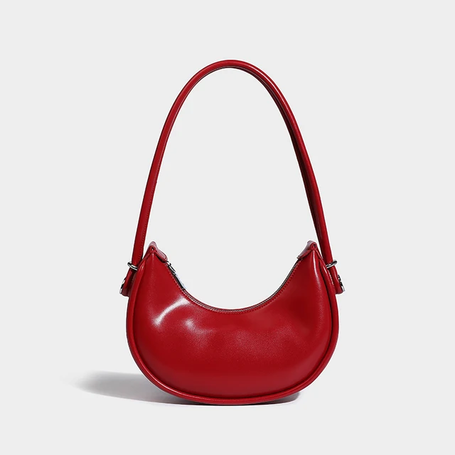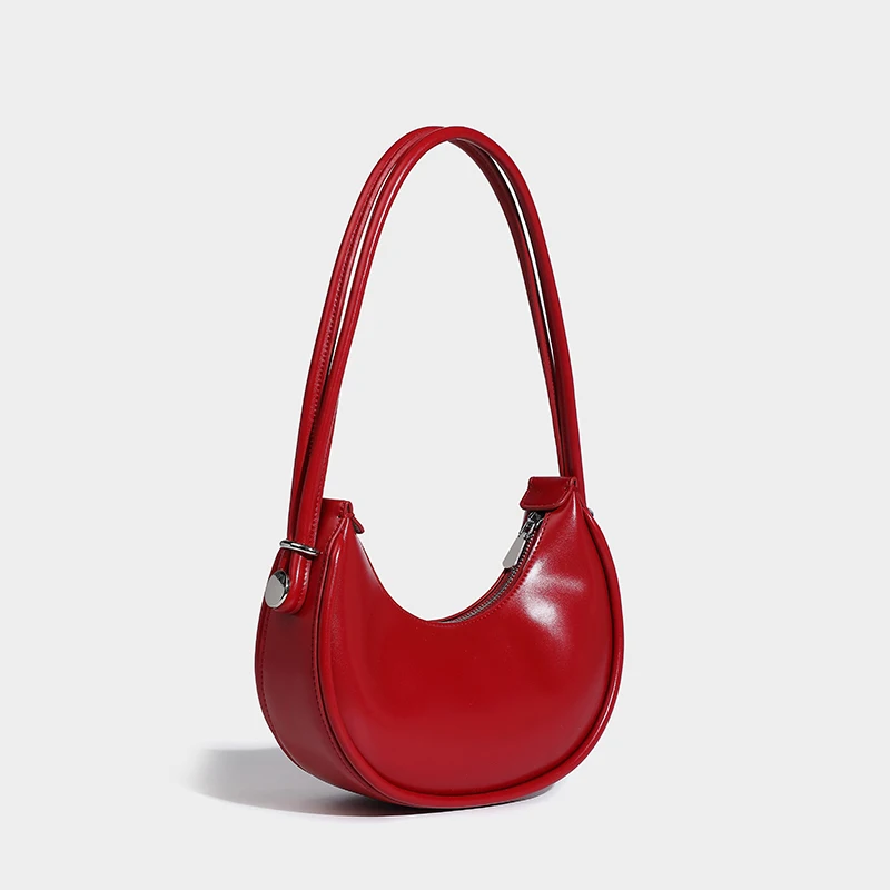 Designer Red Women Small Cell Phone Bag Vegant Leather Half Moon Underarm Shoulder Purse Simple Lady Clutch Handbag