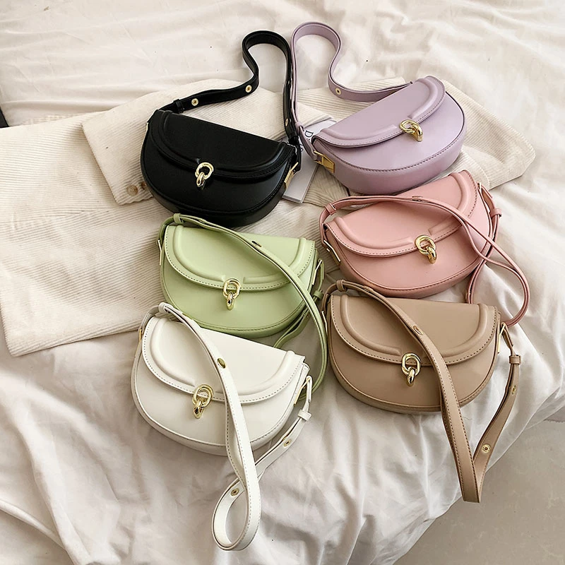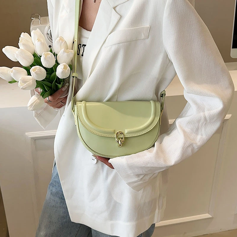Leather Crossbody Bags for Women Female New Spring Trend Fashion Solid Color Simple Saddle Bag Female Handbags and Purses