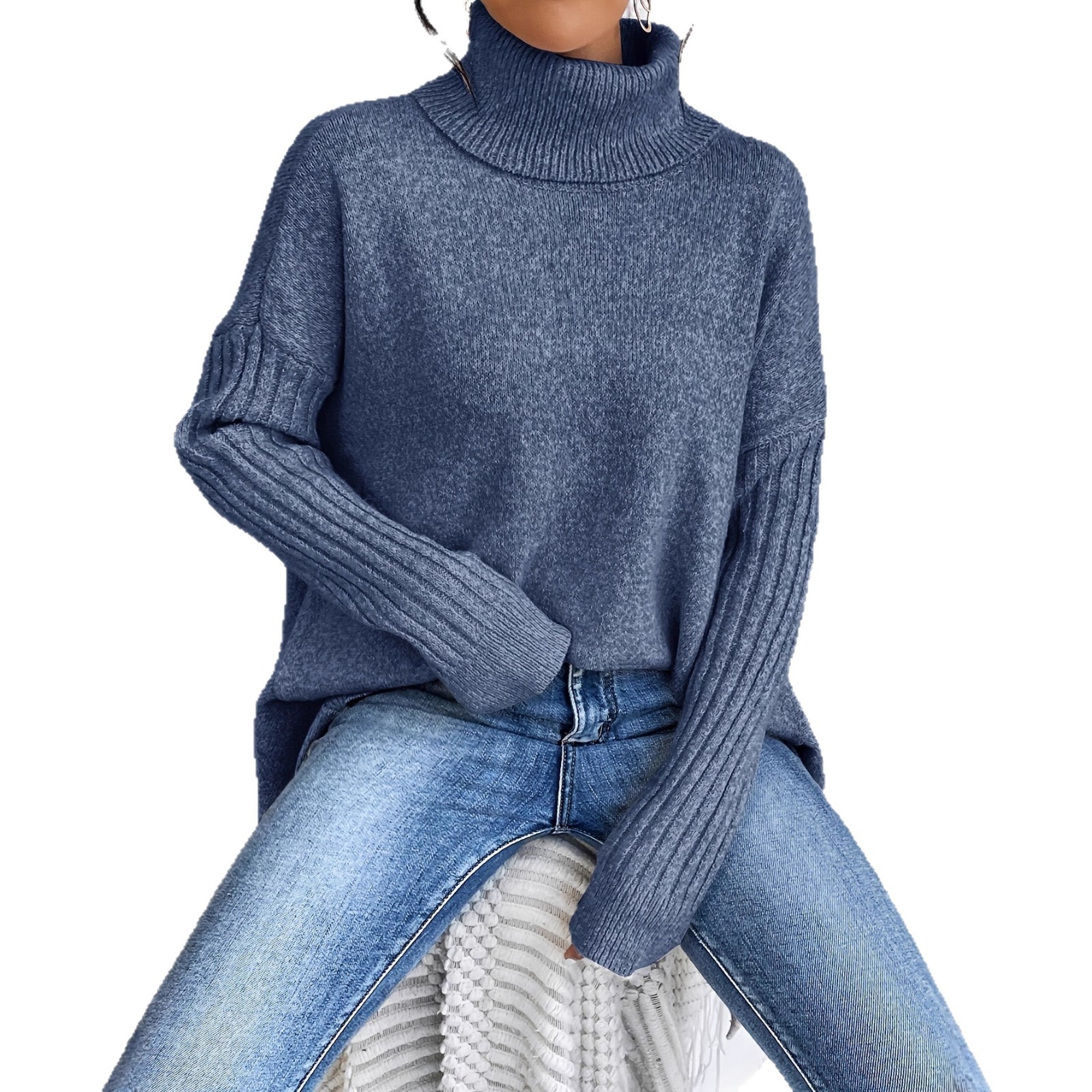 Be the first to review “Loose casual shoulder high neck thick needle sweater knitted sweater” Cancel reply