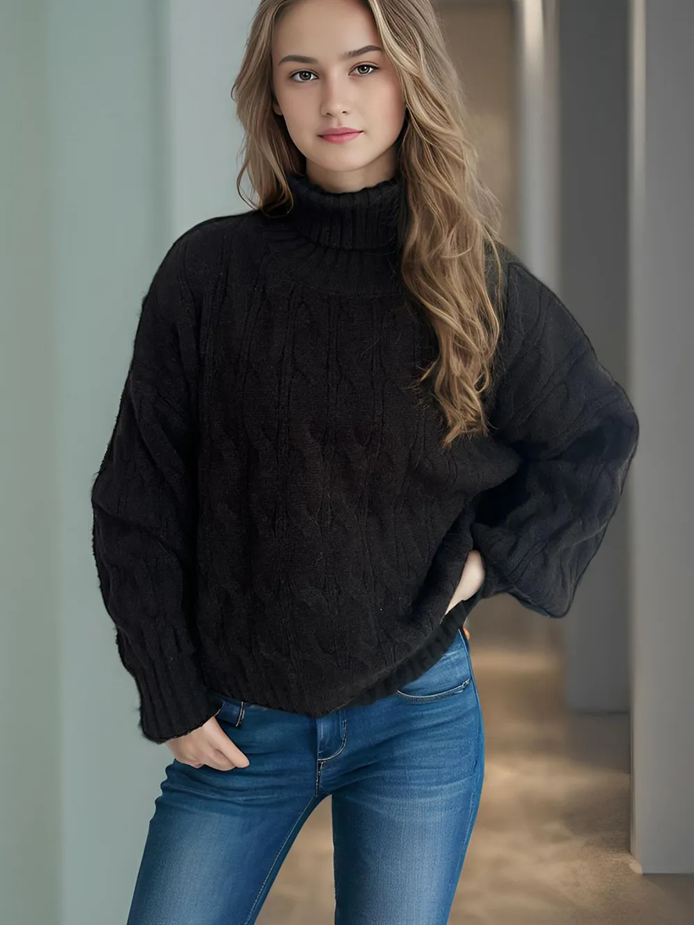 Loose casual shoulder high neck thick needle sweater knitted sweater
