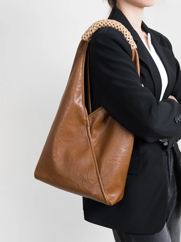 Luxury Genuine Leather Tote Bag for Women, Large Capacity, Top-Grain Cowhide, Handheld Shoulder Bag, HUG Style