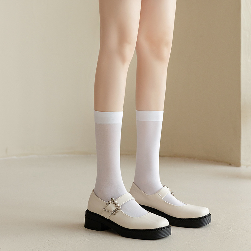 White Socks Women Thin Calf Socks Mid-Tube Socks Transparent Half-Tube Over-The-Knee Stockings JK Stockings