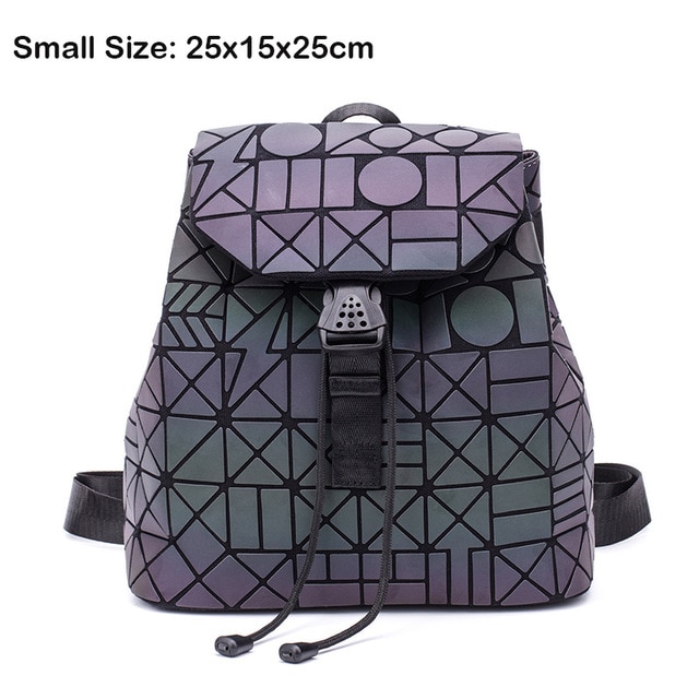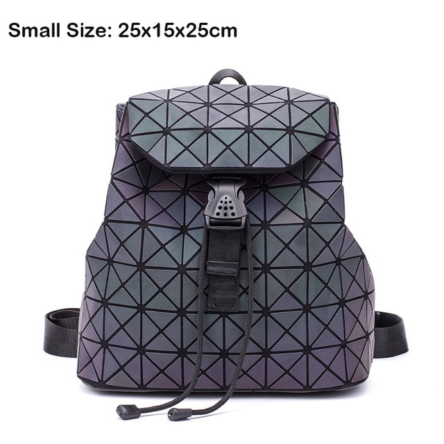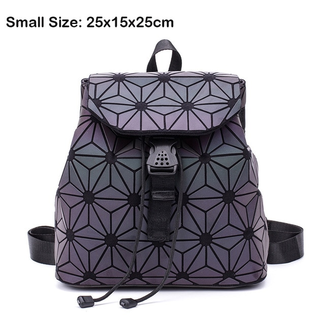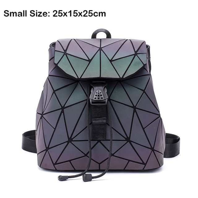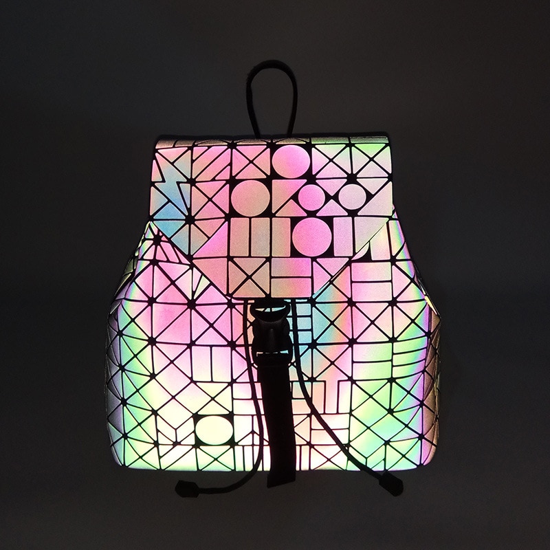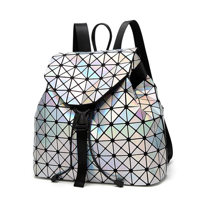 Women Backpack Luminous Geometric Plaid Sequin Female Backpacks For Teenage Girls Bagpack Drawstring Bag Holographic Backpack